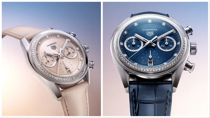 Imparting a luxurious twist to the Carrera collection, TAG Heuer introduces two diamond-set models. The Carrera Chronograph now features a diamond-set flange with 72 diamonds and 11 chaton diamond indexes, available in signature blue and delicate powdery pink. These 39mm timepieces combine elegance with sporty energy, powered by the in-house Heuer 02 (TH20-00) movement.