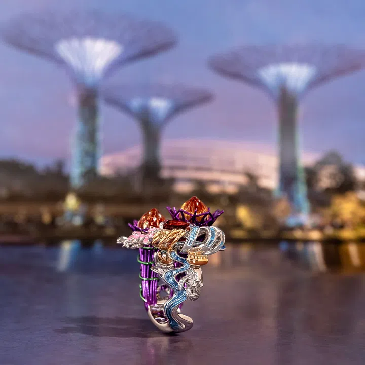 As creative as our local jewellers are, we have not yet seen a piece of fine jewellery inspired by our national icons. That is, until bespoke house Madly Gems surprised us with a radiant and sculptural take on our city’s nature-meets-urban architecture — through a privately commissioned SG60 ring.