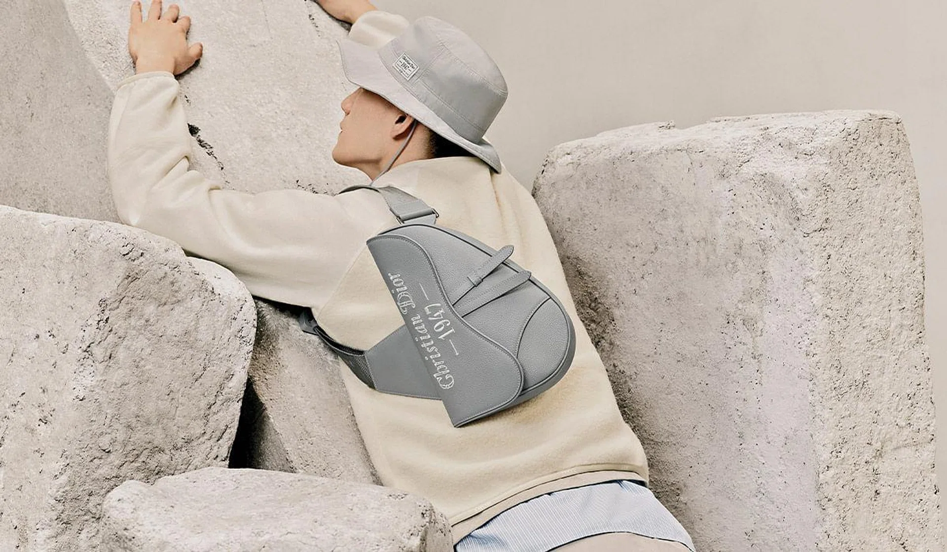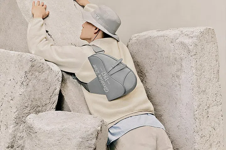 Designed by former Dior creative director John Galliano in 2000, the brand’s asymmetrical Saddle bag was a huge hit then. Since 2019, Dior Men’s Kim Jones has updated the style for a masculine audience with details such as broader straps, contrast stitching, and a safety buckle created by Matthew Williams of contemporary label 1017 Alyx 9SM. The latest version pays tribute to Christian Dior. Aside from being in grey, apparently the couturier’s favourite colour, the bag is also embroidered with his name and the year of the brand’s first fashion show.