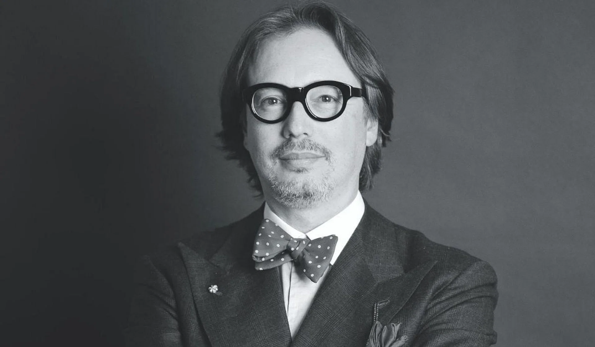 With his printed bow ties, double-breasted suits and dark-rimmed glasses, Davide Cerrato is one of