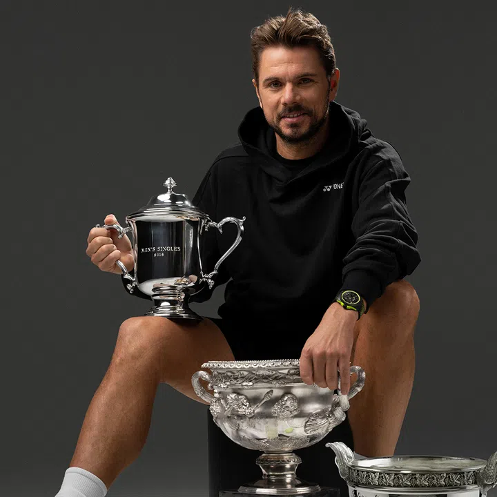 Turn it over, and the sapphire caseback is printed with an image of Stan alongside the years of his Grand Slam victories — 2014, 2015, and 2016 — a reminder of his defining moments at the Australian Open, Roland Garros, and Flushing Meadows.