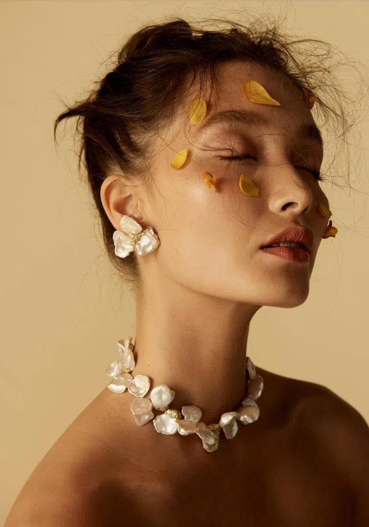 Her earliest jewellery designs reflected this philosophy, with hand-sculpted textures inspired by soil and the moon. “I wanted to create something that complemented the natural shapes of pearls and gemstones, rather than forcing them into conventional forms.”