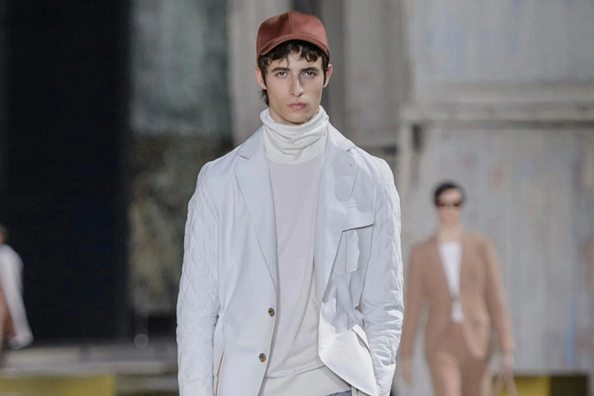 In this debut outing, Sartori presented his vision for Ermenegildo Zegna. “Elegant informality” was a defining theme, with silhouettes that were “soft and active”. Think roomy trousers with cuffed hems, topped with a thin turtleneck and a fluid blazer. He harnessed the brand’s expertise in fabric innovation: Ultra-light cashmere was used to make felted suits that were as comfy as loungewear; while treated calf leather gave jackets a weightless and papery feel.