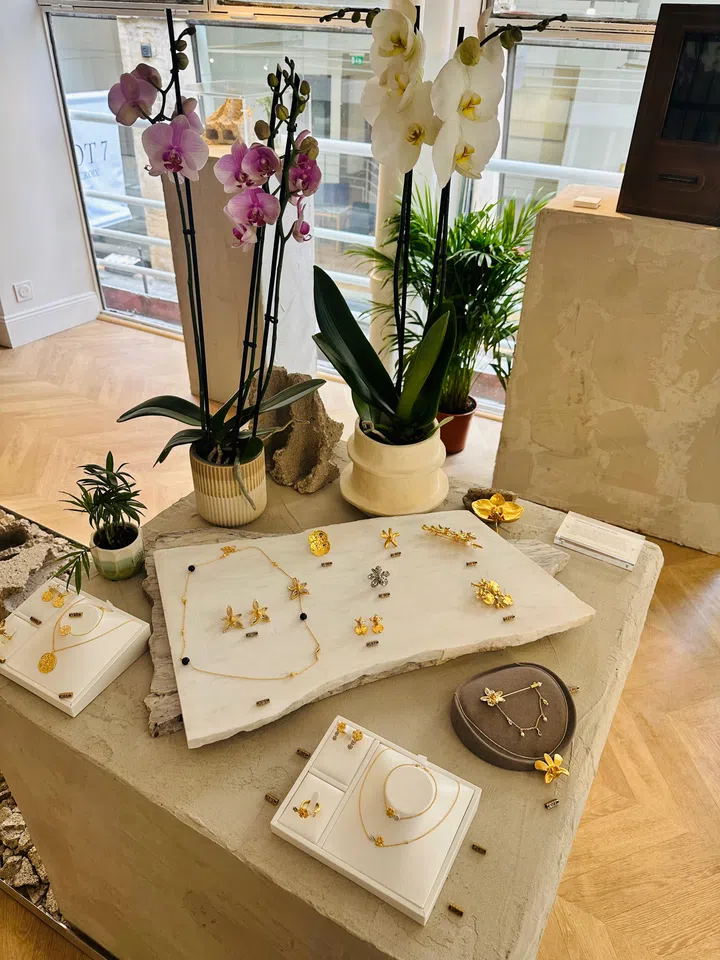 In its recent debut in France, RISIS wowed Parisians with its proprietary innovation of encapsulating real, natural orchids in 24k Swiss gold and high-grade palladium. While this artistry is familiar and long-cherished in Singapore, this is the first time French fashion media, stylists, and tastemakers got up-close with such bejewelled fresh blooms during a month-long pop-up at concept boutique L’ilot 7 in the vibrant Le Marais district.