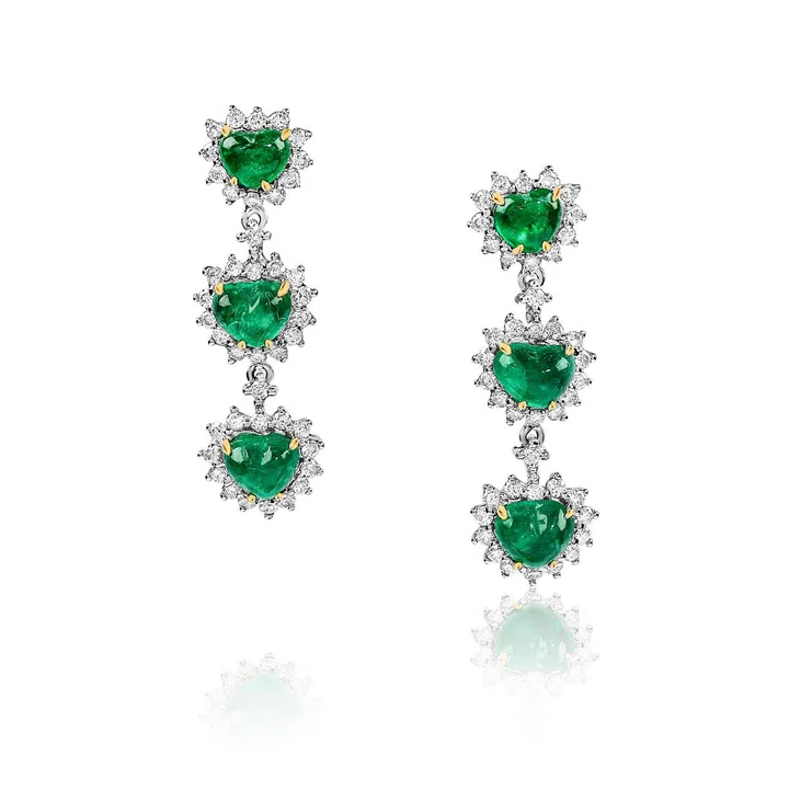 Each stone is unheated and unaltered to preserve true purity and structure. This luxurious pair of emerald and diamond earrings ($5,882) is set with 4.13 carats of Imperial Green Emerald in 18k gold and boasts a highly-prized vivid green colour.