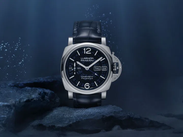 The Luminor Perpetual Calendar GMT Platinumtech PAM01575 crafted with an ultra-hard platinum alloy