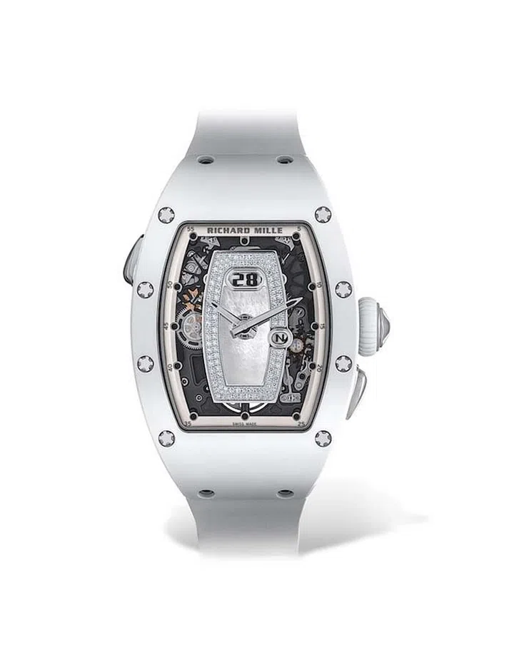 ATZ ceramic, white gold, mother-of-pearl and diamond RM 037 White Ceramic Automatic watch.