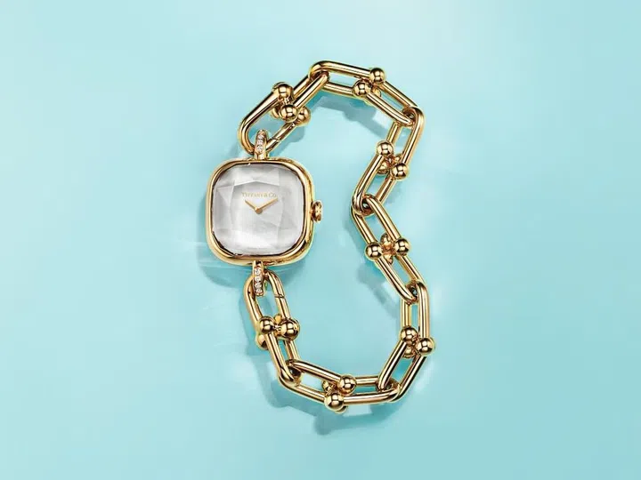 HardWear by Tiffany watch in yellow gold with white mother-of-pearl dial (Photo: Tiffany & Co.)
