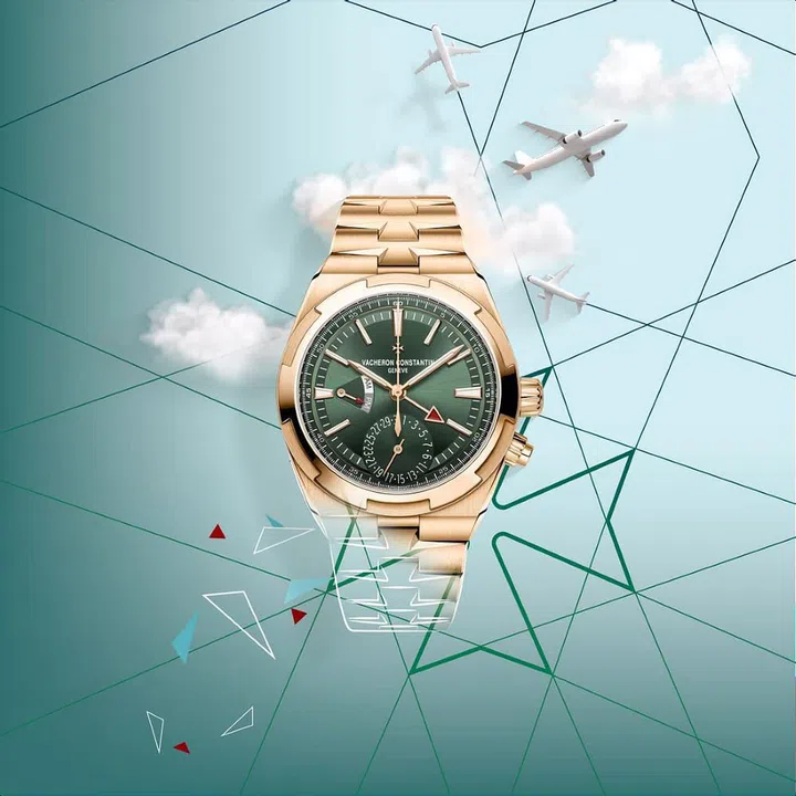 One of the 2024 models showcased is this Overseas Dual Time in rose gold with an olive-green dial (Photo: Vacheron Constantin)
