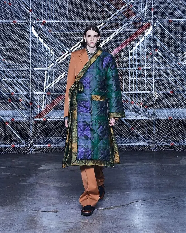 His Fall/Winter 2021 collection, for instance, mixes relaxed tailoring with traditional pieces such as African wraps, and the show was accompanied by 70 pages (yes) of show notes. Here, Abloh questioned stereotypes, identity and social structures: "The Artist, the Architect, the Salesman, the Writer, the Designer. Their familiar uniforms reflect our understanding of ambition, talent and lifestyle. Fashion is a tool for shaping those identities. Dress the part. But subconsciously, our collective view of those characters is still connected to archaic attributes of race, gender and sexuality."