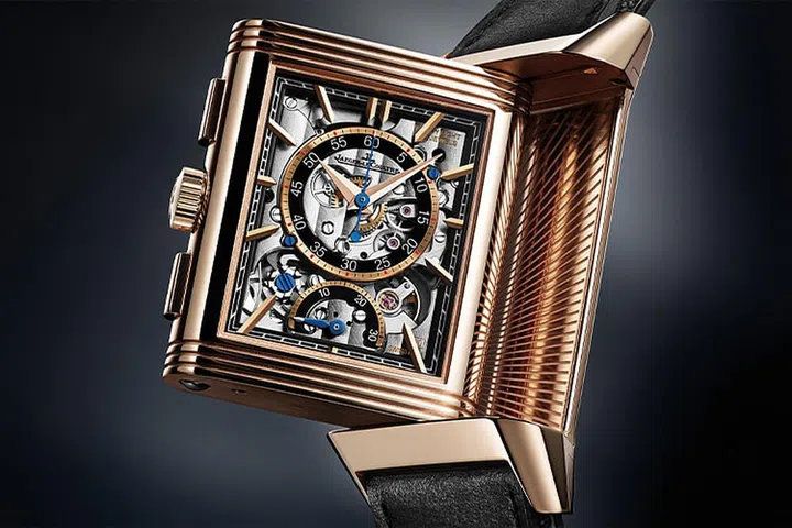 Jaeger-LeCoultre’s new Reverso Tribute Chronograph is inspired by its first Reverso Chronograph from 1996. Powered by the new in-house, hand-wound Calibre 860, the 29.9mm by 49.4mm timepiece is available in steel or pink gold. While the dials on the front and back both show the time, the latter also features a chronograph display. Like the 1996 Reverso Chronograph, the chronograph display includes a retrograde 30-minute counter at the bottom, which is a distinctive design detail that also makes spatial sense in a rectangular chronograph.