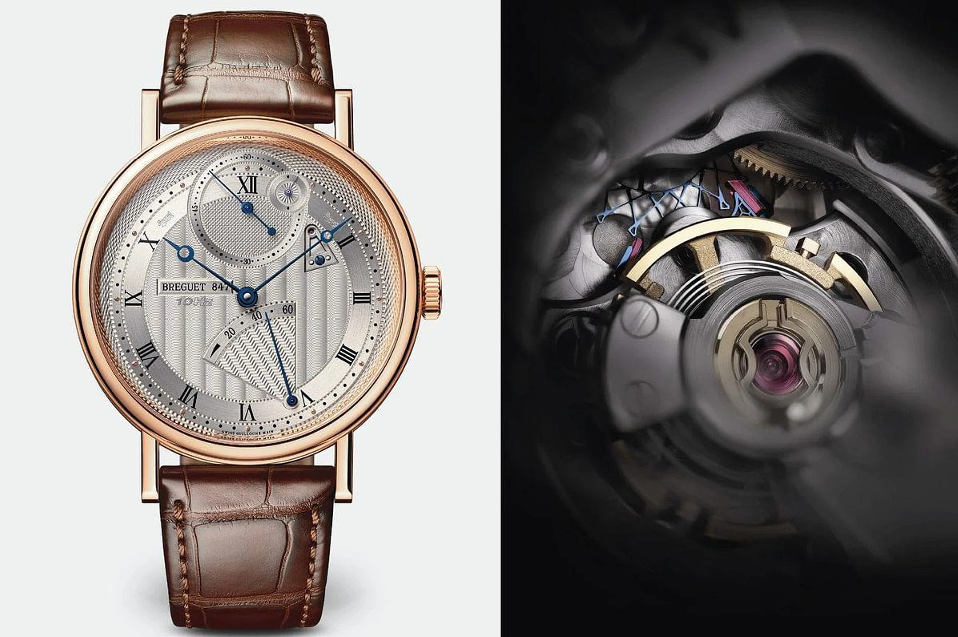 The Breguet Classique Chronometrie Ref. 7727 runs at 10 Hz, or 72,000 vph, more than twice the frequency of a normal movement. That’s thanks to magnetic pivots on the balance wheel that almost eliminate friction entirely, as well as silicon escapement parts. In this case, the race is indeed to the swift.