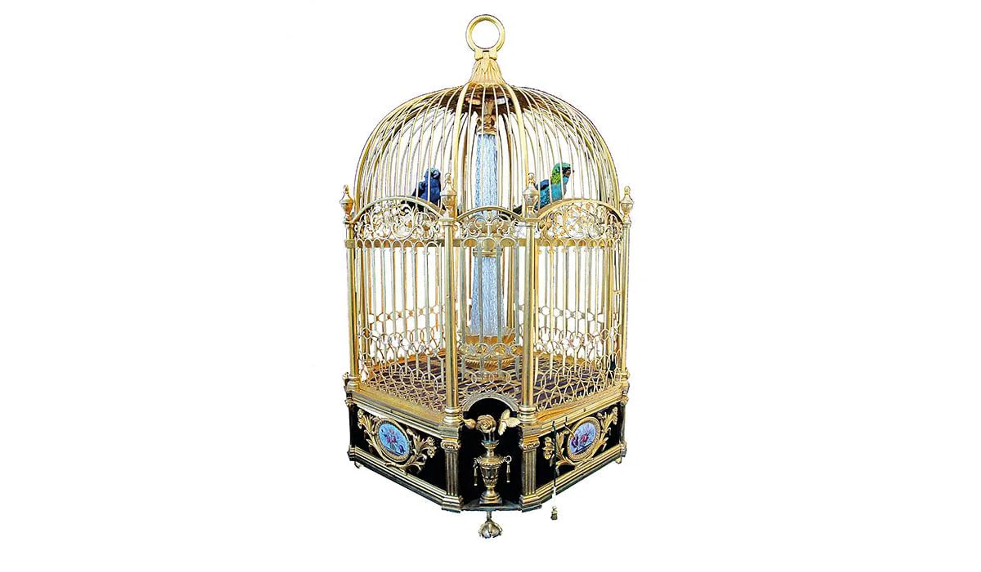 The star of the exhibition is the Parrot Repeater pocket watch. A physical representation of everything the brand stands for, the 56mm red gold pocket watch combines enamelling (paillonnee, grand feu and miniature painting), gem-setting, automata and relief engraving to set the scene for the minute repeater. When the repeater is activated, the birds move and the egg hatches to the chimes of cathedral gongs – true art in mechanical motion.