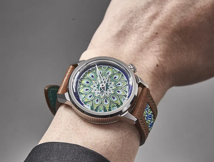 After reading this feature, watch enthusiast Melvin Lim was intrigued by their story and the efforts of this creative collective. He decided to add the Peacock model to his collection of timepieces, which includes exquisitely decorated models such as the Chopard L.U.C XP Urushi Goldfish and the Patek Philippe World Time. Lim received his Feynman Coalesce "Peacock" watch last December, so we got him to share his opinion on his latest acquisition and how it stacks up against the metiers d'art creations by the biggest names in fine watchmaking.